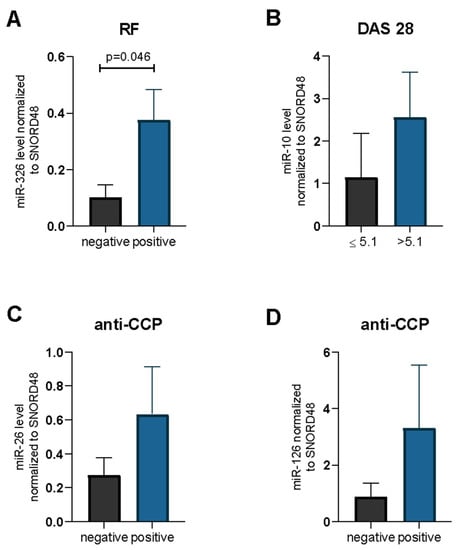 - Prajzlerová, K.; Kryštůfková, O.; Hánová, P.; Horváthová, V.; Gregová, M.; Pavelka, K.; Vencovský, J.; Šenolt, L.; Filková, M. High miR-451 expression in peripheral blood mononuclear cells from subjects at risk of developing rheumatoid arthritis. Sci. Rep. 2021, 11, 4719. [Google Scholar] [CrossRef] [PubMed]