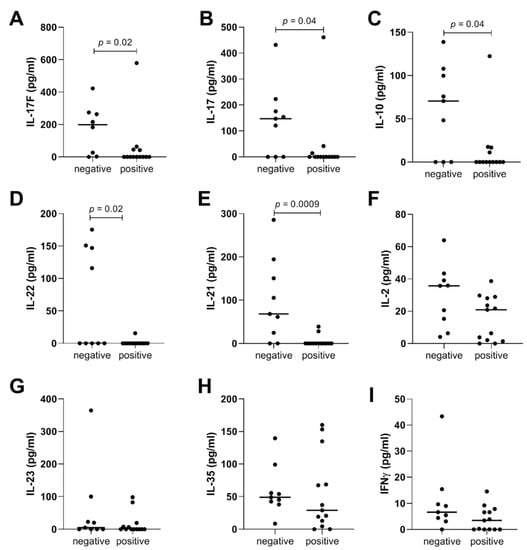 - Filková, M.; Vernerová, Z.; Hulejová, H.; Prajzlerová, K.; Veigl, D.; Pavelka, K.; Vencovský, J.; Šenolt, L. Pro-inflammatory effects of interleukin-35 in rheumatoid arthritis. Cytokine 2015, 73, 36–43. [Google Scholar] [CrossRef] [PubMed]