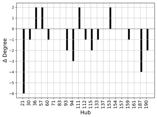 ΔDegree was computed for the comparison of the connectivity degree of hubs in wild-type systems. It is defined as: