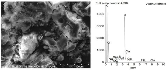 Walnut shells | 46.24 | 42.72 | - | 0.01 | 0.15 | 0.22 | 0.15 | 0.27 | 0.22 | 8.13 | 1.41 | 0.17 | 0.31 | 100 |