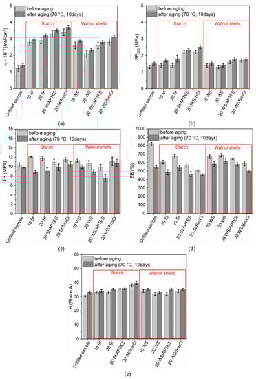 - Gungor, A.; Akbay, I.K.; Ozdemir, T. Waste Walnut Shell as an Alternative Bio-based Filler for the EPDM: Mechanical, Thermal, and Kinetic Studies. J. Mater. Cycles Waste Manag. 2019, 21, 145–154. [Google Scholar] [CrossRef]