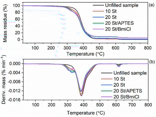 2.6. Thermal Stability of NR Composites Filled with Biofillers