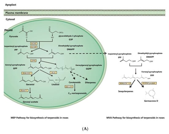 3.1. Biosynthesis of Terpenoids in Rose Floral Scents