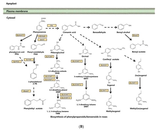 3.2. Biosynthesis of Phenylpropanoids/Benzenoids in Rose Floral Scents