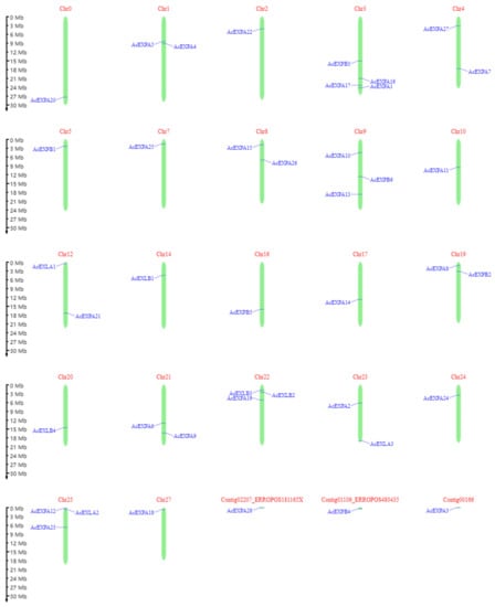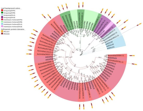 2.1. Phylogenetic Tree Analysis of the AcExpansin Protein Family