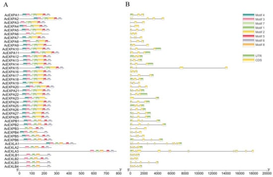 2.4. Analysis of Conserved Domains and Gene Structure of the AcExpansin Protein Family