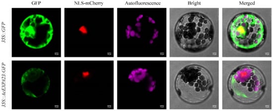 2.8. Transient Overexpression of AcEXPA23 in Kiwifruit