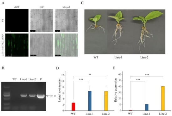 2.9. AcEXPA23 Overexpression in Kiwifruit Enhanced the Number of Lateral Roots