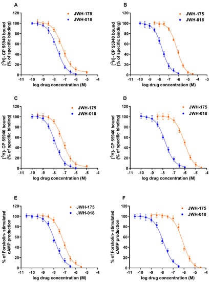 Competition binding experiments performed in CHO cell membranes transfected with human CB1 receptors revealed a Ki value for JWH-175 of 25.8 ± 1.9 nM, while the reference compound JWH-018 displayed a 2.71-fold higher affinity (Table 1).