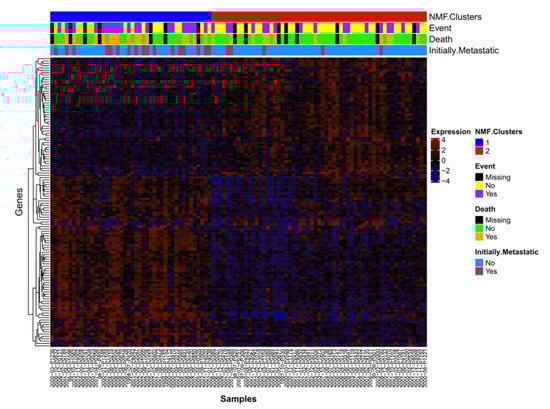 2.1. NMF Clustering of Gene Expression Data Identifies Two Distinct Clusters