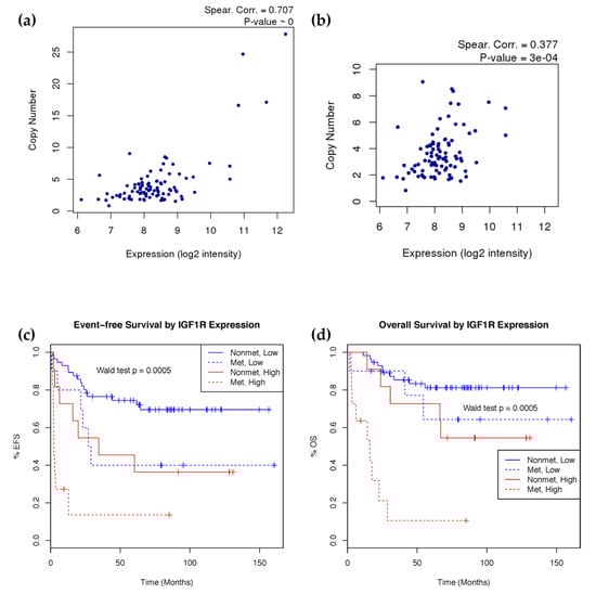 2.4. IGF1R Amplification Is Associated with Higher Expression and Worse Prognosis