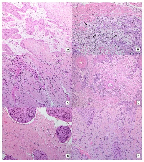 - Karpathiou, G.; Vieville, M.; Gavid, M.; Camy, F.; Dumollard, J.M.; Magné, N.; Froudarakis, M.; Prades, J.M.; Peoc’H, M. Prognostic significance of tumor budding, tumor-stroma ratio, cell nests size, and stroma type in laryngeal and pharyngeal squamous cell carcinomas. Head Neck 2019, 41, 1918–1927. [Google Scholar] [CrossRef]