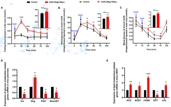 2.3. Chronic Intraperitoneal Injection of GnIH Impaired Glucose Homeostasis in Male Mice