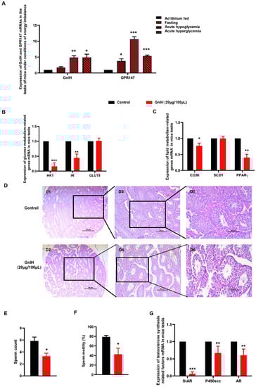 2.5. GnIH and Its Receptor GPR147 Are Involved in Glucolipid Metabolic Disorder-Induced Testicular Dysfunction