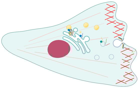 Interestingly, there are cholesterol-sensitive SNAREs that play a role in cell migration and invasion. In Chinese hamster ovary (CHO) Niemann-Pick type C1 (NPC1) mutant cell lines and human NPC1 mutant fibroblasts, it has been proven that altered levels of cholesterol at the TGN/endosome boundaries determine syntaxin 6 accumulation into vamp3, transferrin, and Rab11-positive recycling endosomes (REs). Therefore, the SNARE complex is formed and the fusion of the compartments inhibits the recycling of αVβ3 and α5β1 integrins and cell motility and adhesion. Other molecules and events are affected, such as focal adhesion kinase (FAK), focal adhesion sites and directional migration toward fibronectin (FN) [].