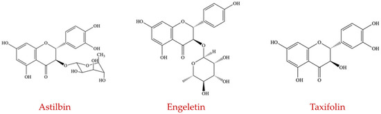 Chemical structures of flavanonols (astilbin, engeletin, and taxifolin) (self-generated).