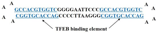 TFEB5′-GAATTCCCGCCACGTGGTCAAAAGACCACGTGGCGGGAA