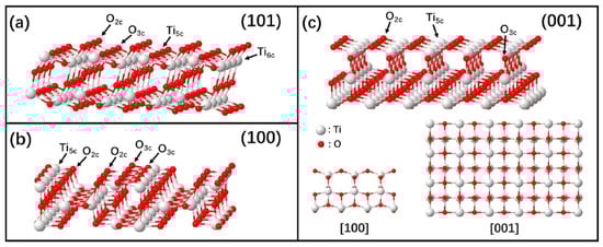 - Li, G.; Fang, K.; Ou, Y.; Yuan, W.; Yang, H.; Zhang, Z.; Wang, Y. Surface study of the reconstructed anatase TiO2 (001) surface. Prog. Nat. Sci. Mater. Int. 2021, 31, 1–13. [Google Scholar] [CrossRef]