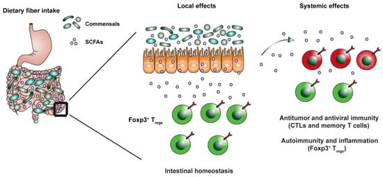 - Smith, P.M.; Howitt, M.R.; Panikov, N.; Michaud, M.; Gallini, C.A.; Bohlooly-Y, M.; Glickman, J.N.; Garrett, W.S. The Microbial Metabolites, Short-Chain Fatty Acids, Regulate Colonic T Reg Cell Homeostasis. Science 2013, 341, 569–573. [Google Scholar] [CrossRef] [Green Version]