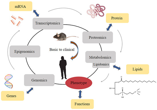 The detection of LPC relies on the rise of lipidomics [16,41]. Lipidomics is a branch of metabolomics, and it is generally believed that lipidomics is a discipline that focuses on the qualitative and quantitative screening of metabolites in an organism and their roles in protein expression and gene regulation [42]. Lipidomic analyses have emerged based on existing omics disciplines and have developed rapidly in recent years [43] (Figure 2).