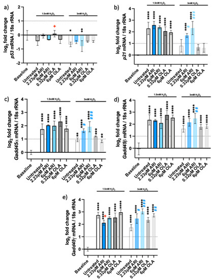 - Tamura, R.E.; de Vasconcellos, J.F.; Sarkar, D.; Libermann, T.A.; Fisher, P.B.; Zerbini, L.F. GADD45 proteins: Central players in tumorigenesis. Curr. Mol. Med. 2012, 12, 634–651. [Google Scholar] [CrossRef]