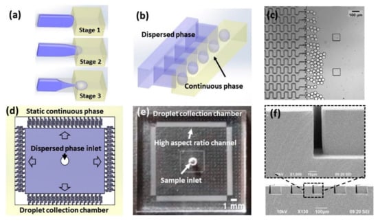 - Ding, Y.; Howes, P.D.; deMello, A.J. Recent Advances in Droplet Microfluidics. Anal. Chem. 2020, 92, 132–149. [Google Scholar] [CrossRef]