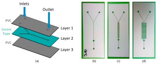 - Kojic, S.P.; Stojanovic, G.M.; Radonic, V. Novel Cost-Effective Microfluidic Chip Based on Hybrid Fabrication and Its Comprehensive Characterization. Sensors 2019, 19, 1719. [Google Scholar] [CrossRef] [Green Version]