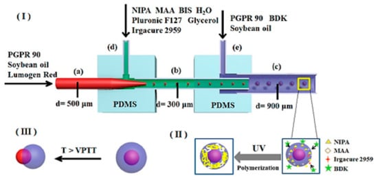 On a different note, Gao and Chen [55] have reported the use of a flow-focusing microfluidic glass capillary assembly for encapsulating solid cores to prepare double emulsions. The chosen geometry allowed the controlled and reliable formation of double emulsion droplets under a wide operating range of flow rates.