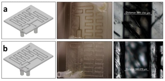 - Castiaux, A.D.; Pinger, C.W.; Hayter, E.A.; Bunn, M.E.; Martin, R.S.; Spence, D.M. PolyJet 3D-Printed Enclosed Microfluidic Channels without Photocurable Supports. Anal. Chem. 2019, 91, 6910–6917. [Google Scholar] [CrossRef]