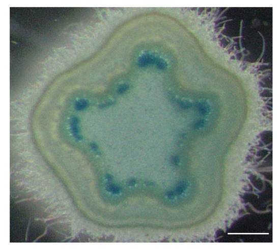 - Jefferson, R.A.; Kavanagh, T.A.; Bevan, M.W. GUS fusions: ß-glucuronidase as a sensitive and versatile gene fusion marker in higher plants. EMBO J. 1987, 6, 3901–3907. [Google Scholar] [CrossRef] [PubMed]