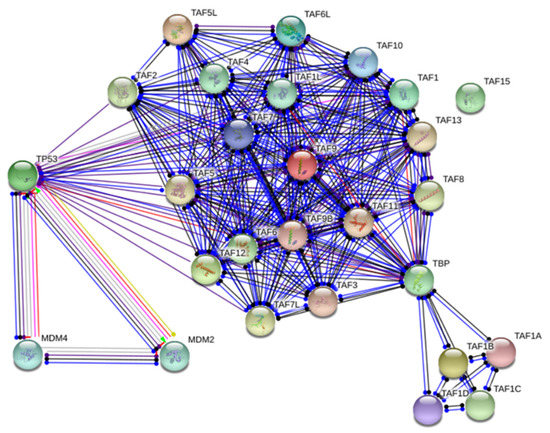 2.3. Network Analysis Revealed That TAFs Directly Interact with TP53 and TBP