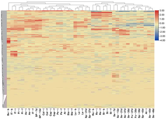 Expression patterns of BnLTP genes in 42 various tissues and organs. The abbreviations combinations of 42 samples of B. napus cultivar ZS11 are listed in supplementary Table S11. The corresponding heatmap containing BnLTP gene names is shown in supplementary Figure S3.