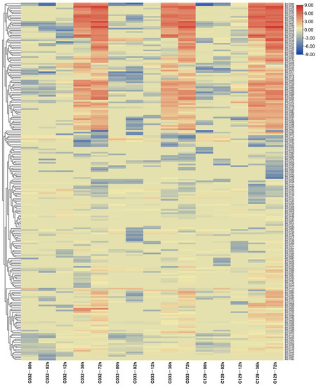 In response to S. sclerotiorum, except for BnLTP016, BnLTP031, BnLTP252 and BnLTP265, the transcriptome data of the remaining 279 BnLTP genes were obtained (Figure 5; Table S15), of which 152 were expressed (FPKM values > 1). A total of 72 BnLTP genes were S. sclerotiorum-responsive genes (p < 0.05) of which BnLTP033, BnLTP129, BnLTP161 and BnLTP264, might have more critical roles in resistance to white stem rot. In response to L. maculans, except for BnLTP016, RNA-seq data of the remaining 282 BnLTP genes were obtained (Figure 6; Table S16) of which 174 were expressed (FPKM values > 1). A total of 96 BnLTP genes were L. maculans-responsive genes (p < 0.05) of which BnLTP161 and BnLTP015 might play more important roles in plant defense to blackleg disease.