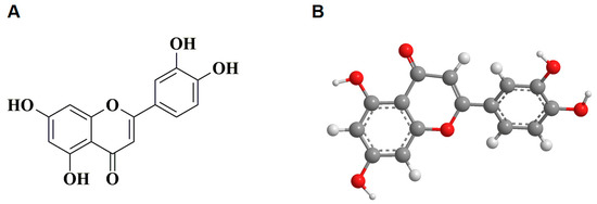 The chemical structure of luteolin. (A) The 2D structure of luteolin, (B) the 3D structure of luteolin.