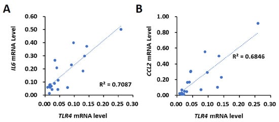 2.1. The Expression of TLR4 Is Positively Correlated with IL6 and CCL2 in Clinical Samples