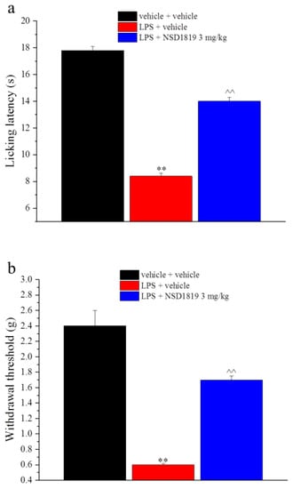 | LPS + NSD1819 3 mg/kg | 76.3 ± 7.7 | 39.0 ± 5.5 |