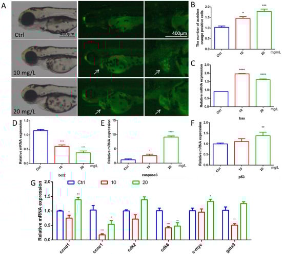 26]. It was observed that the number of apoptotic points increased significantly in the 6-BA-treated group, the heart region showed bright green fluorescence, and the transcription of apoptosis-related genes (