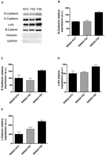 2.1. FUT8 Knockdown Altered Epithelial–Mesenchymal Transition (EMT) Markers in SW480 and SW620 Cell Lines
