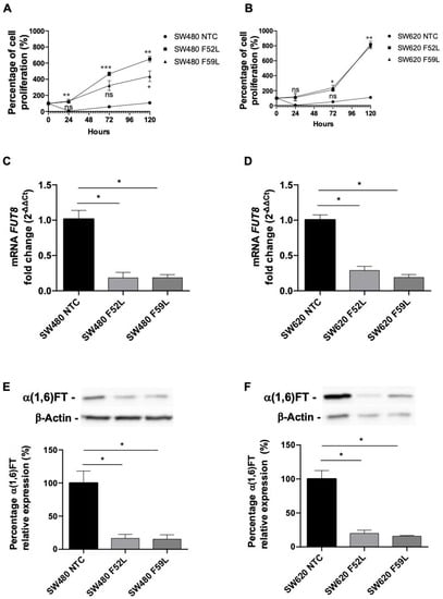 2.3. α(1,6)FT Downregulation Showed Opposite Effect on Proliferation of SW480 and SW620 Cells