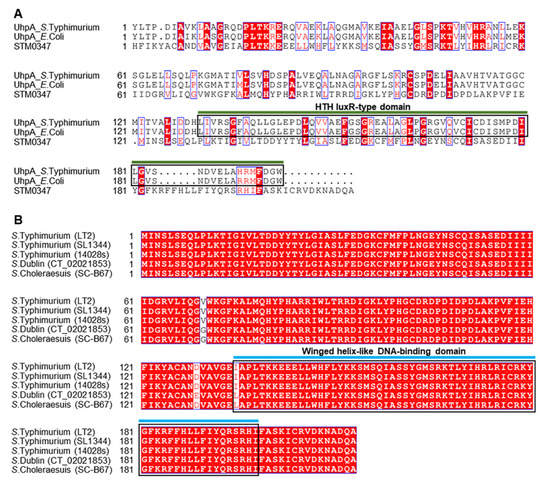 - Sheng, X.; Huang, X.X.; Li, J.; Xie, X.; Xu, S.; Zhang, H.; Xu, H. Regulation of Sulfur Assimilation Pathways in Salmonella enterica Serovar Typhi Upon Up-Shift High Osmotic Treatment: The Role of UhpA Revealed through Transcriptome Profiling. Curr. Microbiol. 2009, 59, 628–635. [Google Scholar] [CrossRef] [PubMed]