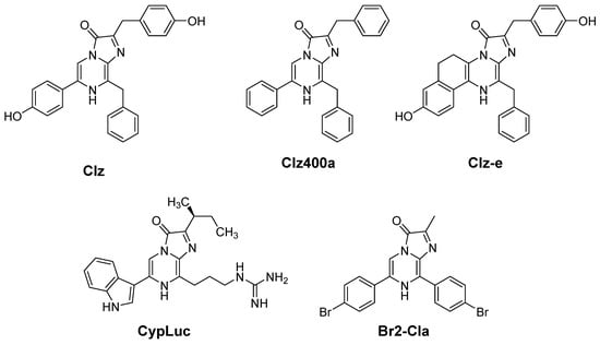 - Krasitskaya, V.V.; Bashmakova, E.E.; Frank, L.A. Coelenterazine-dependent luciferases as a powerful analytical tool for research and biomedical applications. Int. J. Mol. Sci. 2020, 21, 7465. [Google Scholar] [CrossRef]
