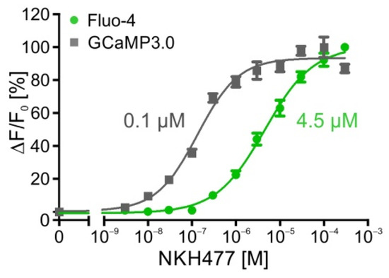 4.2. Ca2+ Fluorimetry in Stably Transfected Cell Lines