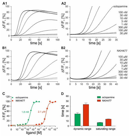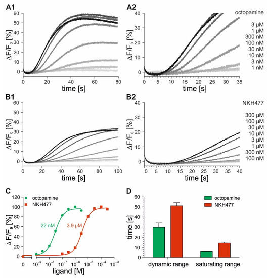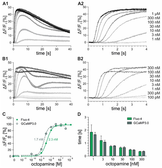 2.2. Time-Resolved Measurements with DmOctα1B-Expressing Cells