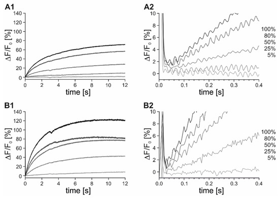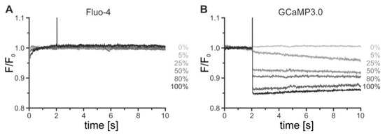 - Gee, K.R.; Brown, K.A.; Chen, W.N.U.; Bishop-Stewart, J.; Gray, D.; Johnson, I. Chemical and physiological characterization of fluo-4 Ca2+-indicator dyes. Cell Calcium 2000, 27, 97–106. [Google Scholar] [CrossRef]