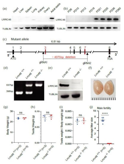 2.4. Lrrc46 Is Required for Spermatogenesis