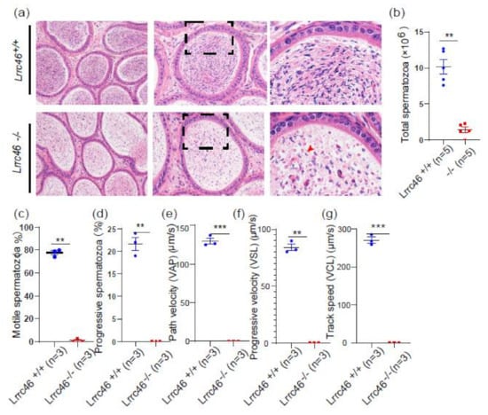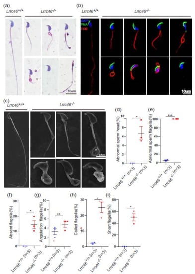 APA StyleYin, Y., Mu, W., Yu, X., Wang, Z., Xu, K., Wu, X., Cai, Y., Zhang, M., Lu, G., Chan, W.-Y., Ma, J., Huang, T., & Liu, H. (2022). LRRC46 Accumulates at the Midpiece of Sperm Flagella and Is Essential for Spermiogenesis and Male Fertility in Mouse. International Journal of Molecular Sciences, 23(15), 8525. https://doi.org/10.3390/ijms23158525
