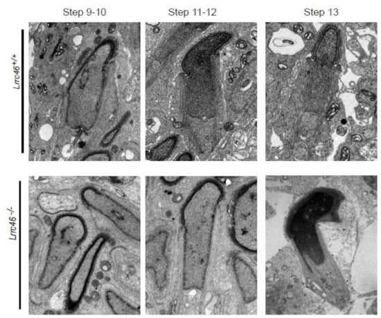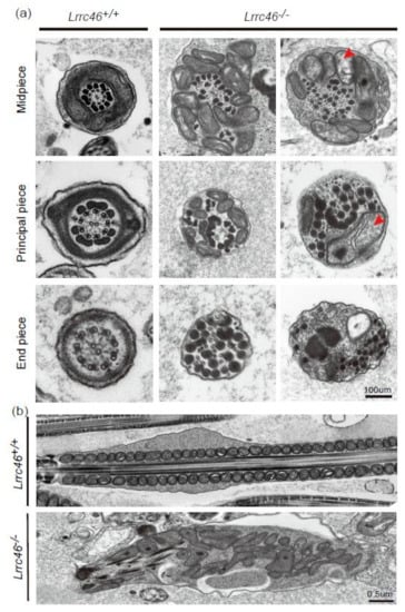 2.6. Loss of Lrrc46 Causes Sperm Flagellum Ultrastructure Abnormalities