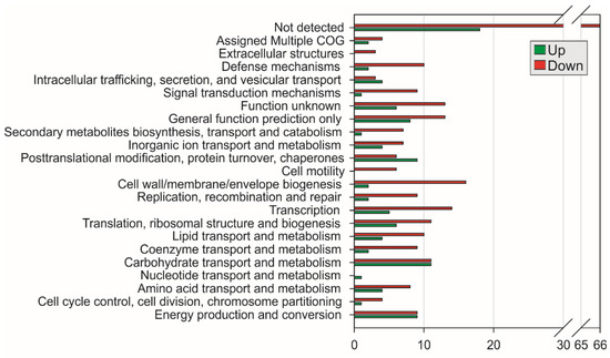2.1. Differentially Expressed Gene Identification and Iron-Activated and Repressed Genes by Functional Category