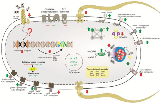 - Nwugo, C.C.; Gaddy, J.A.; Zimbler, D.L.; Actis, L.A. Deciphering the iron response in Acinetobacter baumannii: A proteomics approach. J. Proteom. 2011, 74, 44–58. [Google Scholar] [CrossRef]
