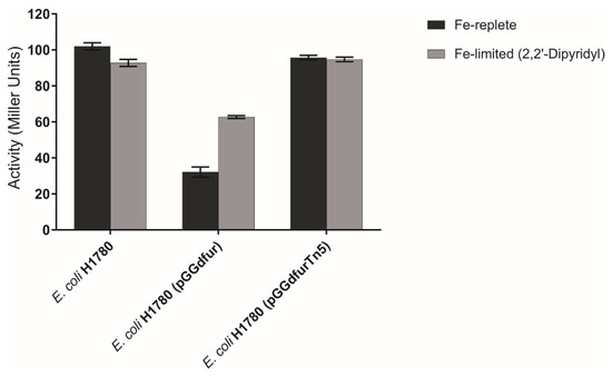 - Hantke, K. Selection procedure for deregulated iron transport mutants (fur) in Escherichia coli K 12: fur not only affects iron metabolism. Mol. Gen. Genet. 1987, 210, 135–139. [Google Scholar] [CrossRef] [PubMed]